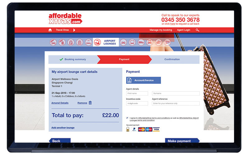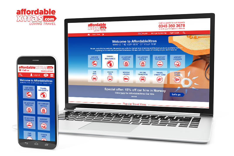 Front-end layout and functionality design for AffordableXtras - travel ancillaries website.